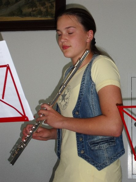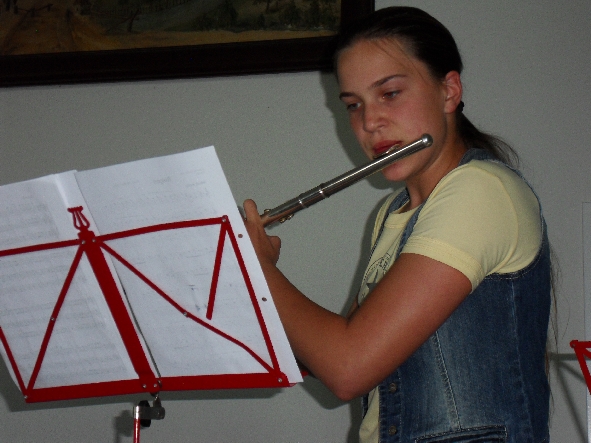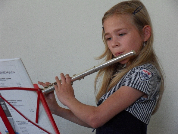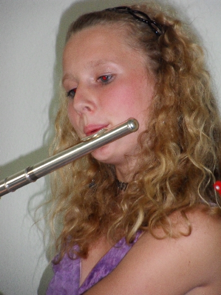 Melissa Löhle, nach Blockflöte und Klavier nun mit ihrem Hauptinstrument, der Querflöte