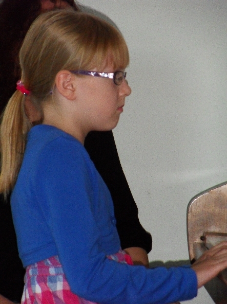 bei einem Allegretto von Carl Czerny. Auch “Der Elefant” und “Der Dudelsackpfeifer” trägt sie souverän vor.